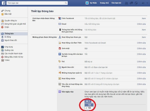 | Tìm lại “ngày này năm xưa” trên Facebook: Đổi từ Tắt sang Bật. |
