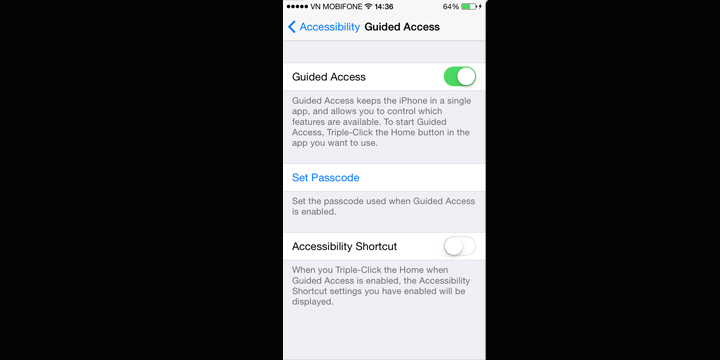 Đây là cách làm cho nạn nhân không thể tài nào thoát ra khỏi ứng dụng đang chạy trên máy. Tính năng này được "tài trợ" bởi Guided Access, nó sẽ giữ cho iPhone chỉ chạy trên một app duy nhất, nếu muốn thoát ra, bạn phải đánh password vào.