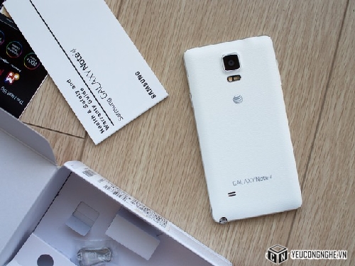 Chiếc Galaxy Note 4 được bao bọc rất cẩn thận bằng lớp ni lông nhựa xung quanh các bộ phận của điện thoại. Bạn hãy tháo bỏ lớp bóng này ra khỏi các góc máy, nút Home và đặc biệt là camera của máy trước khi sử dụng Note 4. Nếu quên tháo lớp bóng này, khoảng một tuần sau bạn sẽ cảm thấy rất kỳ lạ khi một số giấy bóng trên Note 4 rơi rụng ra. Điều này cũng ngớ ngẩn như việc bạn bước ra khỏi phòng tắm mà giấy vệ sinh vẫn còn dính ở giày!