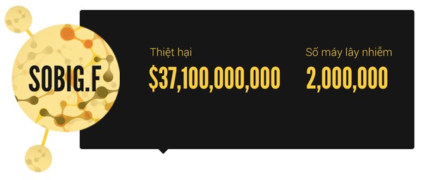 Có cách thức lây nhiễm chủ yếu tương tự virus I Love You qua email, SoBig.F đã gây ra thiệt hại lên tới 37,1 tỷ USD. Một số “chiến công” của SoBig.F phải kể đến như làm "sập" một nửa lưu lượng truy cập của Washington, D.C, khiến nhiều chuyến bay của hãng Air Canada phải hạ cánh khẩn cấp và làm chậm hệ thống máy tính ở nhiều công ty lớn.