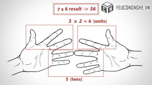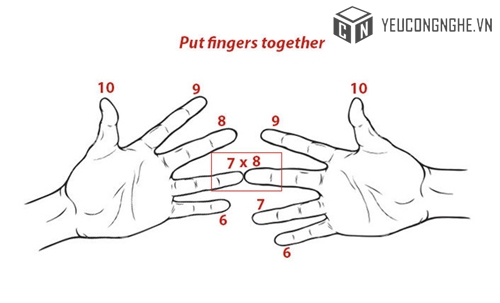 2. Sử dụng hai bàn tay để làm phép nhân 7,8, và 9