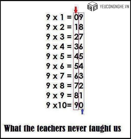 1. Bảng cứu chương nhân 9 có qui luật ngược chiều