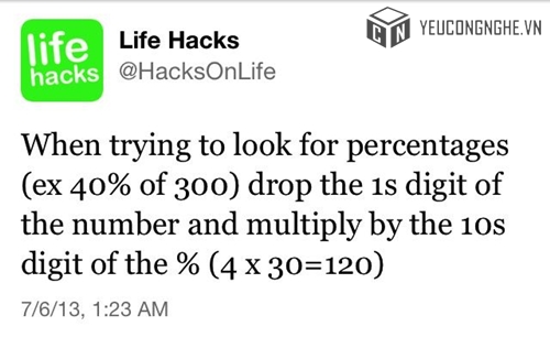 Muốn tính phần trăm của một số (ví dụ 40% của 300) bỏ chữ số hàng đơn vị của số cần tính %, sau đó nhân chữ số hàng chục của phần trăm (4 x 30) ta sẽ được kết quả bằng 120.