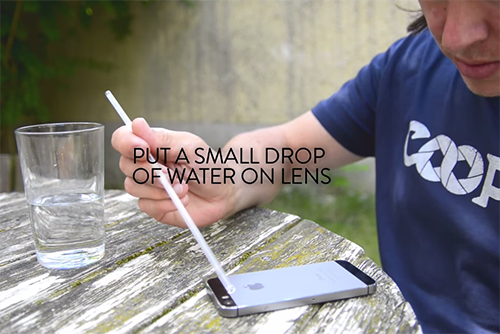 Do giới hạn thiết kế nên smartphone gặp nhiều khó khăn trong việc chụp cận cảnh. Để khắc phục, người dùng có thể nhỏ một giọt nước tinh khiết lên mặt kính camera phía sau điện thoại. Hướng máy về phía chủ thể cần ghi lại sao cho giọt nước không bị chảy ra và bấm nút chụp. Ảnh nhận được sẽ mang lại kết quả đầy bất ngờ.