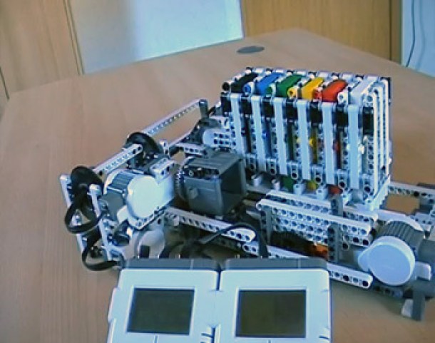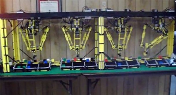 Một dây chuyền lắp ráp LEGO đi kèm khả năng phân loại mảnh LEGO và được làm từ Lego những gì bạn đang nhìn thấy. Nó được tạo ra bởi Chris Shepard với việc sử dụng các màu sắc và cảm biến ánh sáng để phân biệt các loại Lego được đặt trên các vành đai khác nhau.