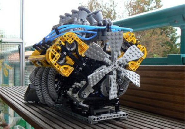 Không chỉ có vẻ bề ngoài giống 1 cái máy, mà nó cũng có thể quay với vận tốc 1500 vòng/phút, và các tính năng hoạt động được cả pittong, động cơ máy chạy. Nó được tạo ra bởi người đam mê LEGO- ông Dutch Barry Bosman. Ông đã sử dụng tổng cộng 2862 khối lego và đầu tư 300 giờ cùng với 400 $ vào dự án.