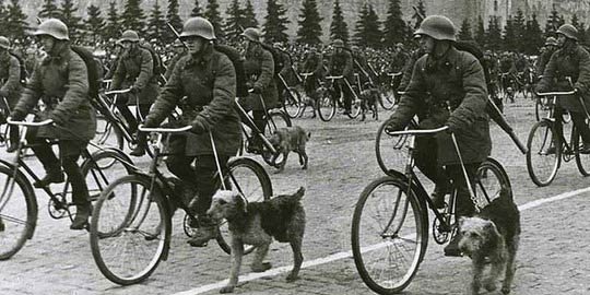 Bắt nguồn từ sự bội ước của Đức Quốc xã đối với Liên bang Xô viết hồi Thế chiến hai, trong một nỗ lực nhằm ngăn chặn sự xâm nhập của quân Đức vào lãnh thổ, Liên Xô đã gắn thuốc nổ lên những chú chó và huấn luyện chúng chạy theo xe tăng Đức. Có tổng cộng khoảng 300 chiếc xe tăng bị phá hủy bằng phương thức “không giống ai” này.