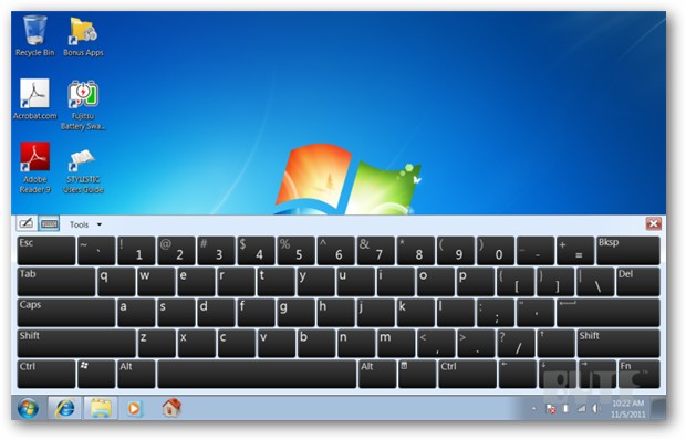 Trong Windows 7 bạn có thể vào Start, ngay ô tìm kiếm gõ: On-Screen Keyboard (hay vào Start/All Programs/Accessories/Ease of Access/On-Screen Keyboard) và click để bật bàn phím ảo và nhập mật khẩu, nhằm tránh một phần mềm keylogger nào đó lưu lại mật khẩu khi gõ bàn phím vật lý thông thường.