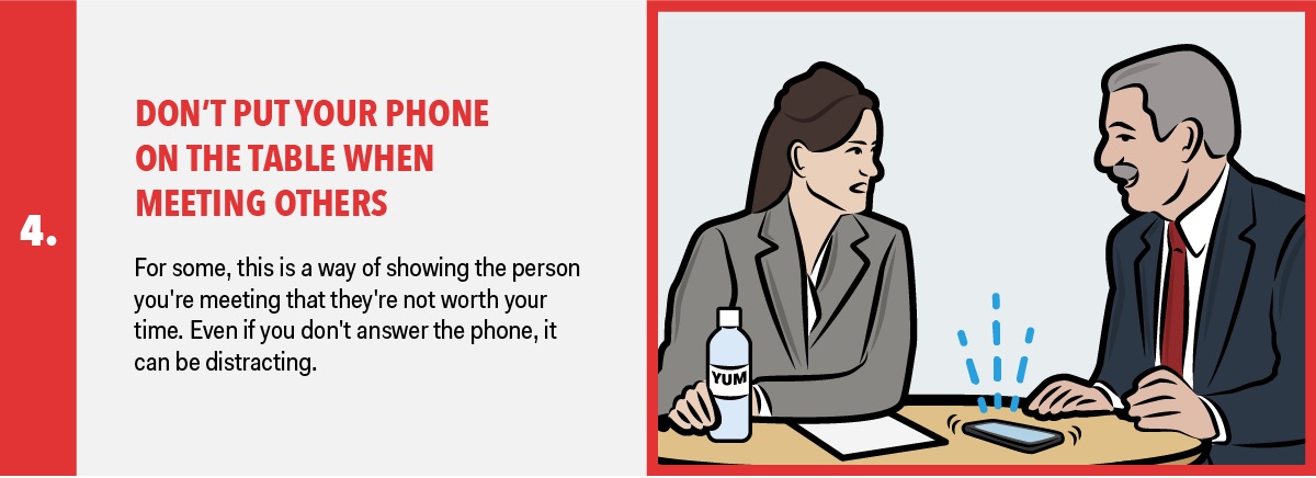 4. Không đặt điện thoại trên bàn khi họp với người khác