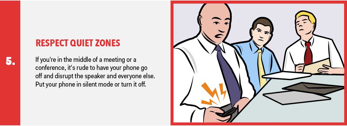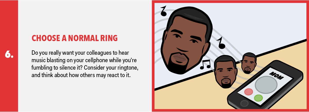 Liệu bạn có cảm thấy khó chịu khi bạn đang tập trung, tiếng chuông điện thoại của ai đó reo lên và cắt ngang luồng suy nghĩ của bạn. Chắc chắn là có. Do vậy, đừng để điều tương tự xảy ra với các đồng nghiệp bằng cách đặt mức âm lượng vừa phải cho chuông điện thoại hoặc tốt hơn chuyển nó sang chế độ rung.