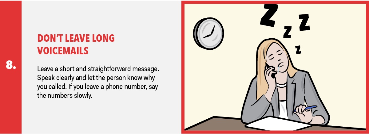 Hãy để lại một tin nhắn thoại ngắn gọn và xúc tích. Trình bày rõ ràng lý do vì sao bạn gọi. Trường hợp bạn muốn để lại số điện thoại, hãy đọc nó một cách chậm rãi nhất có thể.