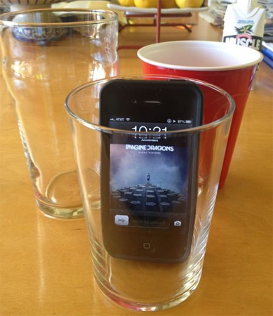 Lần tới khi nghe nhạc bằng loa ngoài của điện thoại, hãy thử đặt điện thoại trong một chiếc ly hoặc cốc thủy tinh dày nặng.