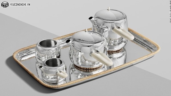 Là thành quả sau cú bắt tay hợp tác giữa nhà thiết kế Marc Newson cùng thương hiệu trang sức Georg Jesen, bộ ấm trà dát bạc này đang khiến giới nghệ thuật điên đảo vì độ tinh tế. Ngoài chất liệu mây tre tự nhiên ở mỗi lớp lót thì phần tay cầm cũng được chạm khắc thủ công từ hóa thạch ngà voi ma mút quí hiếm. Hiện sản phẩm đang được rao bán với mức giá 82,000 GBP (khoảng 2,7 tỷ VND).