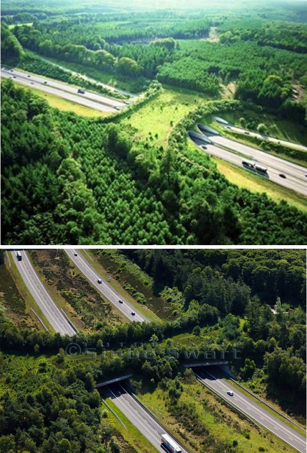 Đường cầu vượt sinh thái trên cao băng qua các đường cao tốc tại Hà Lan cũng là những công trình ý nghĩa đối với sự sống của động vật hoang dã lẫn sự an toàn của con người.
