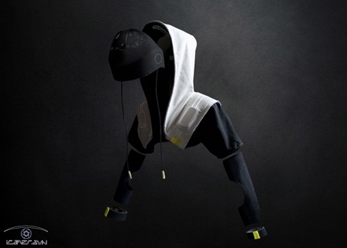 Nhiều bộ phận cảm ứng được tích hợp với chiếc áo giúp loại bỏ đi những cuộn dây rườm rà thường thấy ở những chiếc kính thực tế ảo khác. Mắt được che phủ bằng một chiếc kính và chiếc mũ trùm có thể tùy chỉnh kéo lên hay xuống, khít lại hay giãn ra để cách biệt người sử dụng với thế giới xung quanh. Tay áo tích hợp các máy cảm ứng giúp người sử dụng cảm nhận được những vật mình chạm vào trong thế giới ảo.