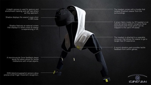 Được sáng tạo bởi công ty công nghệ và thiết kế Artefact, Shadow, chiếc áo công nghệ có khả năng mang đến cho game thủ trải nghiệm nhất trong thực tế ảo bằng cách sử dụng những chiếc máy tính nhỏ, pin và các máy cảm ứng được gắn liền ở trong bộ áo. Game thủ sẽ được trùm lên người một chiếc áo choàng bao phủ phần đầu, vai và cả hai cánh tay mang đến cảm giác và cả sức mạnh vật lý thật của người sử dụng vào trò chơi.