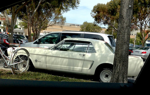 Còn có những mẫu xế cổ như chiếc Ford Mustang màu trắng ngà đời 1965, ở bãi đỗ này còn vài chiếc như vậy.