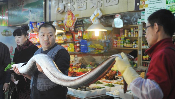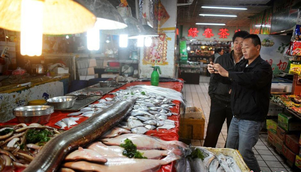 Xuất hiện tại khu chợ hải sản, chú dưa xám khổng lồ hiếm gặp này thu hút được rất nhiều sự chú ý của mọi người nhờ vẻ ngoài kỳ dị của mình.