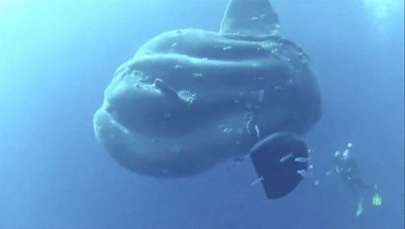 Erik van der Goot, người đã quay cận cảnh chú cá này cho biết đây là lần đầu tiên anh được thấy một con cá mặt trăng to lớn như vậy. “Chúng tôi đã tình cờ gặp con cá kỳ lạ này ở độ sâu khoảng 15 mét và mất một khoảng thời gian để theo sát nó."