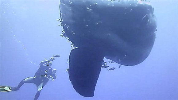 Kích thước khổng lồ của nó vượt xa gấp hàng nghìn lần so với những con vật khác bơi xung quanh.