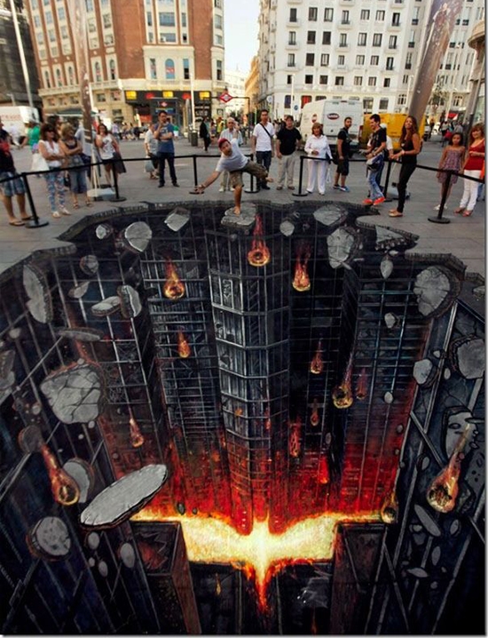 Bộ phim The Dark Knight u ám, tăm tối của đạo diễn Christopher Nolan cũng không hề kém cảnh khi đầu tư hết sức công phu vào ảnh quảng cáo 3D trên đường phố khiến nhiều người phải hốt hoảng.
