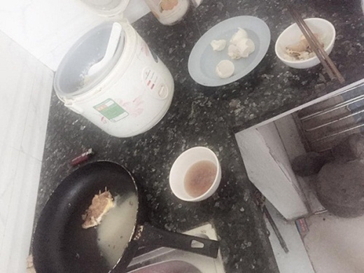 Có lẽ vì ỷ y vắng chủ vắng cả chó giữ nhà nên tên trộm này mặc sức ăn uống phủ phê rồi về.