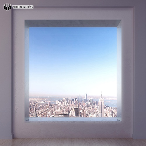Khung cửa sổ có thể nhìn bao quát một phần rộng lớn của New York.  |