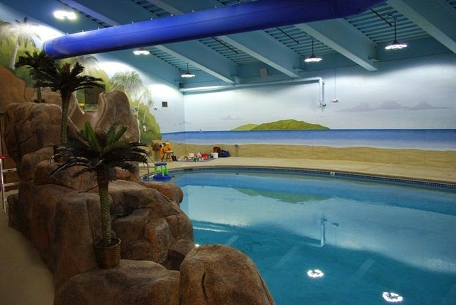 Cây và những hòn non bộ bên bể bơi. Cư dân trong hầm còn có thể nuôi cá trong những trang trại thủy sản. Họ cũng có thể trồng 72 loại rau và cây ăn quả trong những khu vườn.