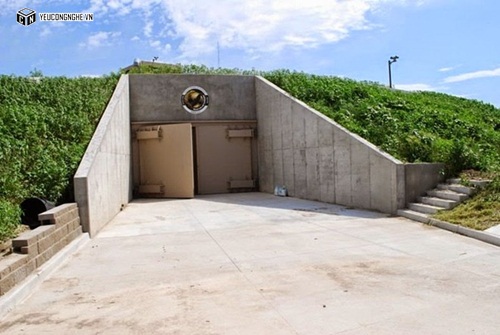 Hai cánh cửa ở lối vào của Survival Condo Project , một công trình phức hợp nằm trong hầm chứa tên lửa cũ gần thành phố Concordia, bang Kansas, Mỹ. Quân đội Mỹ xây 72 hầm chứa tên lửa trong thập niên 60 để phục vụ một chương trình của Lầu Năm Góc.