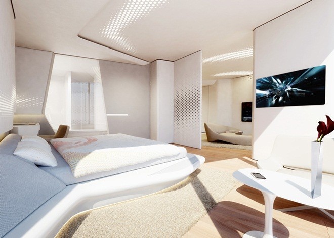 Thiết kế siêu tưởng bên trong khách sạn mang lại cảm giác như đang ở bên trong một chiếc tàu vũ trụ.