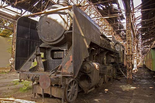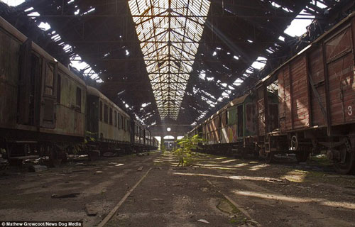 Nhiếp ảnh gia người Anh chụp cảnh hoang phế bên trong một xưởng sửa chữa tàu cũ nát tại Hungary, nơi vô số tàu hỏa yên nghỉ.