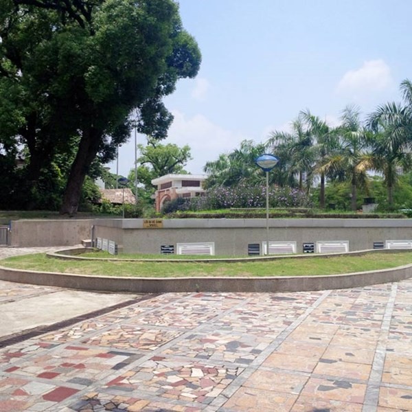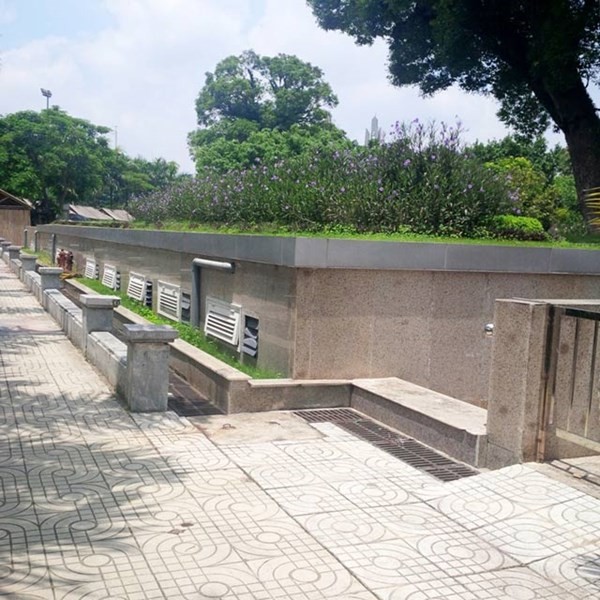Nhà vệ sinh công cộng này được xây dựng nổi 1,2m trên mặt đất và phần chìm là 4m, thuộc Dự án khu trưng bày ngoài trời của Bảo tàng Văn hóa các dân tộc Việt Nam.