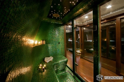 Phòng xông hơi lát đá thạch anh màu ngọc bích.