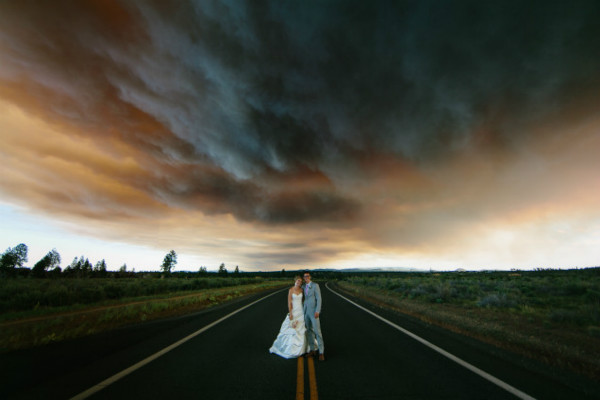 Nhiếp ảnh gia Josh Newton đã chộp được những tấm ảnh cưới ấn tượng vào đầu tháng này tại Oregon, sau khi một ngọn lửa nhỏ ở vùng lân cận vượt tầm kiểm soát và đội cứu hỏa đến sơ tán tất cả khách khứa khi buổi lễ đang diễn ra giữa chừng.