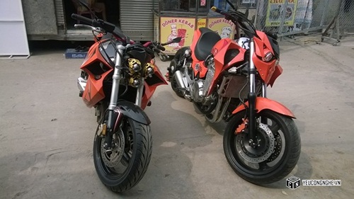 Nếu như không được giới thiệu trước, rất khó để nhận ra đây là 2 mẫu xe Hornet 600 (bên trái) và X4 (bên phải) của Honda. Bởi diện mạo của 2 mẫu xe phân khối lớn này đã thay đổi gần như hoàn toàn khi qua bàn tay của một người thợ độ kinh nghiệm tại Sài Gòn.