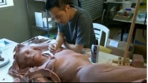 Một "nghệ nhân" đang trong quá trình tạo hình "Nàng tiên cá"