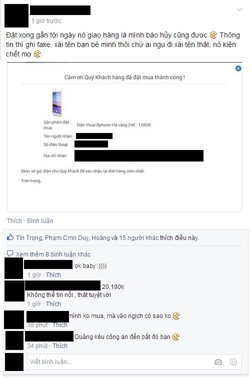 Một thanh niên khác cũng coi việc đặt mua và hủy đơn hàng điện thoại Bphone là một trào lưu giải trí và cũng bày "kinh nghiệm" cho những ai muốn tham gia troll sản phẩm của hãng BKAV.