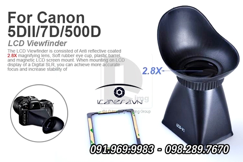 LCD Viewfinder cho máy Canon 5D Mark II, 7D, 500D, Nikon D700, D800. Sản phẩm ống ngắm chuyên nghiệp giúp bạn có góc nhìn 3D, tạo độ sáng nét và thật hơn khi nhìn hình ảnh trên màn hình.