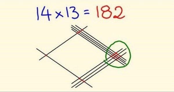 Bước thứ hai, lấy một số cộng với chữ số hàng đơn vị của số còn lại, được bao nhiêu thêm 1 số 0 vào đằng sau đó. Cuối cùng ta cộng kết quả của hai bước trên lại sẽ tìm được đáp số cuối cùng rất nhanh chóng và thậm chí không cần tính ra nháp. Ví dụ 14 x 13 = 4 x 3 + (14 + 3)0 = 12 + 170 = 182.