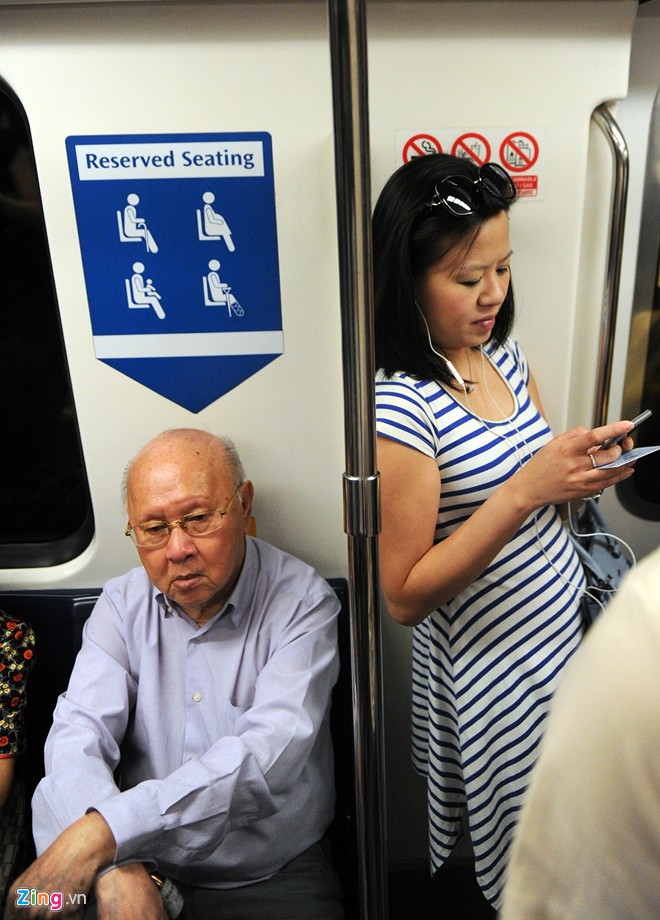 Người tham gia giao thông bằng MRT tại Singapore rất văn minh. Phụ nữ có thai, người già, người đau yếu và trẻ em luôn được nhường ghế.