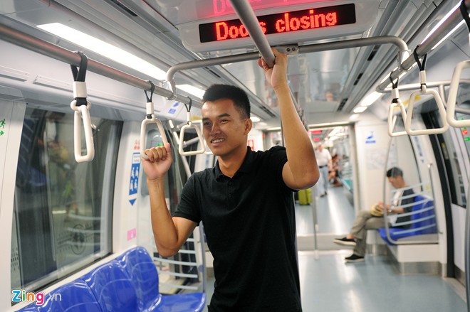 Thủ môn của đội tuyển bóng đá U23 Việt Nam Phạm Văn Tiến trong một ngày xả trại cũng trải nghiệm hành trình du ngoạn quanh Singapore bằng MRT.
