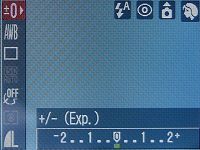 Khi chụp hình, có thể do lý do nào đó mà tấm hình không được đúng sáng như ý, ta có thể dùng chức năng này để tăng sáng hay giảm sáng cho cú bấm tiếp theo. Khi đó máy sẽ điều khiển tốc độ chụp, hoặc khẩu mở để tăng hoặc giảm sáng. Thường thì mỗi nấc tương đương với 1/3 EV step.