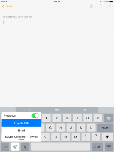 Bước 5: Mở ứng dụng Note hoặc Messages. Nhấn và giữ biểu tượng trái đất để mở ra các tùy chọn bàn phím. Bấm vào Swype để chọn.