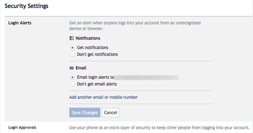 Kích hoạt tính năng nhận thông báo khi có ai đó đăng nhập Facebook.