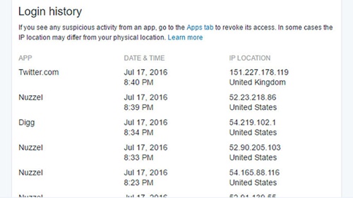 Mục Device history và Login history sẽ hiển thị tên ứng dụng, thời gian đăng nhập, địa chỉ IP và vị trí tương ứng. Đáng tiếc là là Twitter không hỗ trợ tính năng để chấm dứt các hoạt động này từ xa, nhưng ít nhất bạn vẫn có thể xem được những gì đang xảy ra.