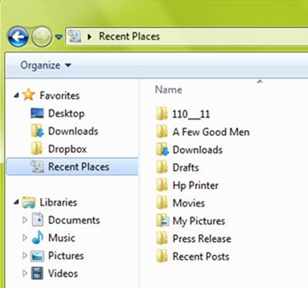 Thư mục Recent Places cho thấy mọi tệp tin và thư mục sử dụng gần đây trong máy tính Windowcủa bạn. Bằng cách này, bạn có thể biết được những kẻ lén lút đã truy nhập vào những gì trong máy tính của mình.