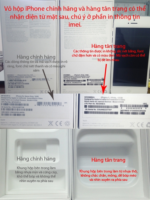 Một cách dễ nhận biết là với hàng loại này dù hình thức như mới, thậm chí đầy đủ phụ kiện, hộp đựng nhưng khi kiểm tra bằng số Serial và IMEI thì được Apple thông báo đã kích hoạt (actived) và hết hạn bảo hành. Bên cạnh đó, người dùng có thể phân biệt bằng vỏ hộp máy với các thông tin in ở bên ngoài.