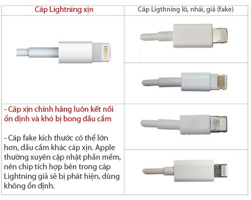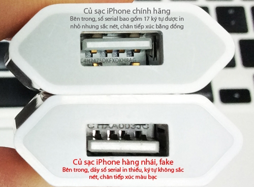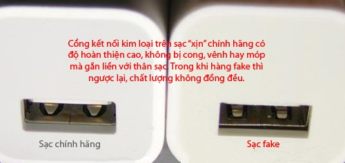 Thông thường, sạc hay cáp hay đi kèm dễ phát hiện vì thường là hàng lô, hoặc nhái, giả (fake) nhằm giảm giá thành. Hoặc có trường hợp, máy là hàng Mỹ nhưng củ sạc lại theo chuẩn của Singapore, Hong Kong.