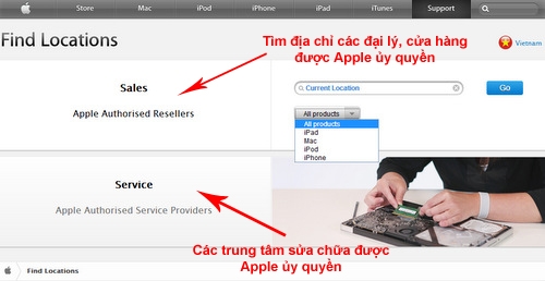 iPhone hay iPad đều đã được phân phối chính thức ở Việt Nam và chất lượng được đảm bảo theo quy định của Apple, nhưng vẫn tồn tại một lượng hàng lớn tiêu thụ ở thị trường xách tay. Nhiều người sử dụng lâu năm chia sẻ, trước khi mua khách hàng nên chọn lựa các địa chỉ uy tín hoặc tìm mua tại các đại lý, nhà phân phối ủy quyền và chính thức được Apple công bố trên website của hãng (https://locate.apple.com/vn/en).