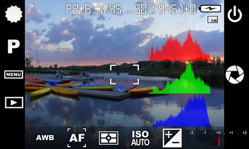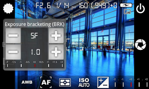 +DSLR- hoạt động như một màn hính kính ngắm: hiển thị thời gian phơi sáng,khẩu độ và dừng màn hính với EV và cài đặt chênh sáng (bracketing settings)